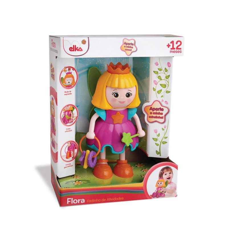 Ficha Técnica:Marca: Elka;Nome do produto: Flora Fadinha de Atividades;Idade recomendada: A partir de 1 ano;Selo Inmetro: ?CE-BRI/IQB-2276 - NM 300/2002 - OCP 0006;Contém: 1 Boneca de Atividades.