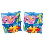 Agora as crianças vão poder se divertir na piscina com estes simpáticos personagens do fundo do mar do Flutuador de Braço Estampado da Intex!