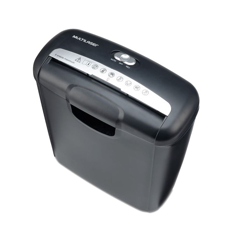 Fragmentadora Multilaser, desenvolvida para aceitar até 6 folhas ao mesmo tempo, com capacidade de fragmentar cartões além de papel. Seu corte é em tiras!