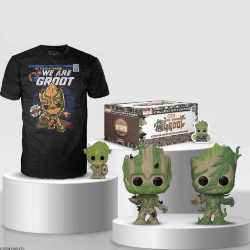 DESCRIÇÃO: Prepare-se para embarcar em uma jornada cósmica com a Marvel Collector Corps, a caixa de assinatura que desvenda os momentos mais lendários e os crossovers mais épicos do universo Marvel! Esta edição especial, "Eu Sou Groot", é uma homenagem vibrante aos heróis, vilões e aventuras que ganharam vida na sua tela favorita do Disney+. Criada e cuidadosamente selecionada pela Funko, a caixa Marvel Collector Corps "Eu Sou Groot" é um deleite para todos os fãs da Marvel, os entusiastas da Funko, e qualquer um que se maravilhe com o vasto e emocionante universo Marvel. Não perca a chance de ter o melhor do universo Marvel em suas mãos! Pronto para expandir sua galáxia de colecionáveis Marvel? Cada caixa surpresa é um tesouro, recheada com 4 a 5 itens exclusivos e altamente cobiçados. Adicione à sua prateleira figuras únicas de personagens que você ama, reimaginados no adorável estilo Pop! Itens perfeitos para exibir seu amor pela Marvel em sua mochila, jaqueta ou onde sua criatividade permitir. Vista sua paixão com uma camiseta de design único, que celebra o melhor da Marvel. ITENS INCLUSOS: 01 - Funko Pop Marvel We Are Groot 1414 Groot as Ant-Man;