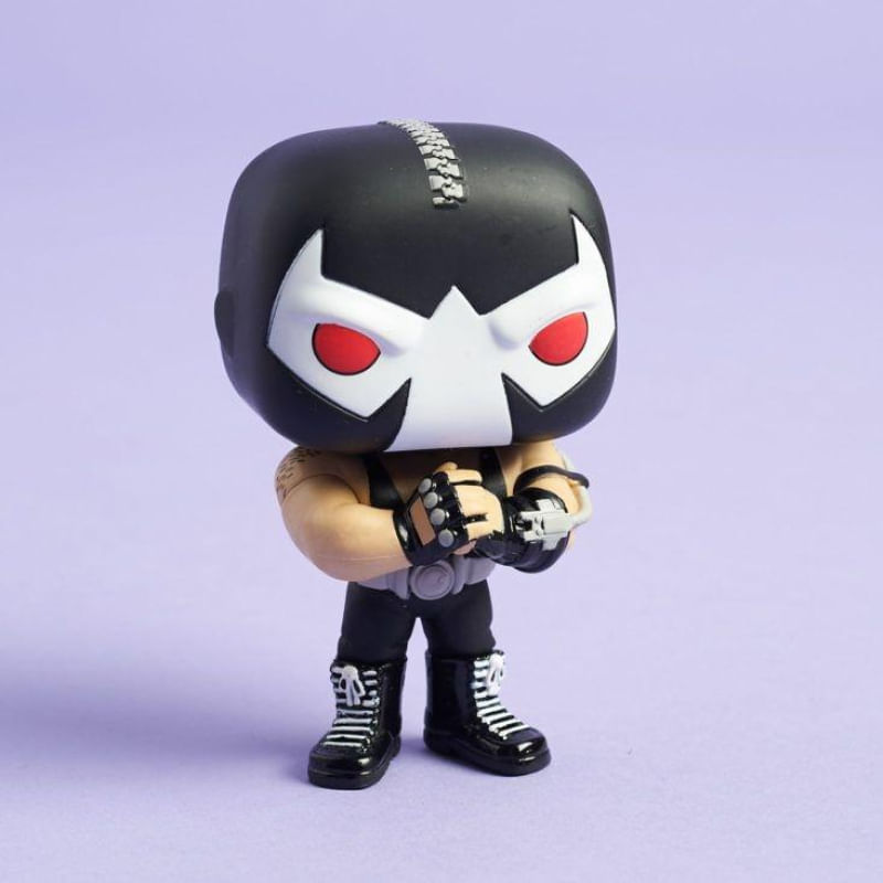 Bane passou a infância e o início da vida adulta na prisão, cumprindo a sentença de seu pai, mas desenvolveu habilidades extraordinárias e se transformou em um super vilão! Como um vinil POP estilizado da Funko! Figura representa 3 3/4 polegadas e vem em uma caixa de exibição de janela. ITENS INCLUSOS: - 1 Funko Pop DC Super Heroes 218 Bane Exclusive.