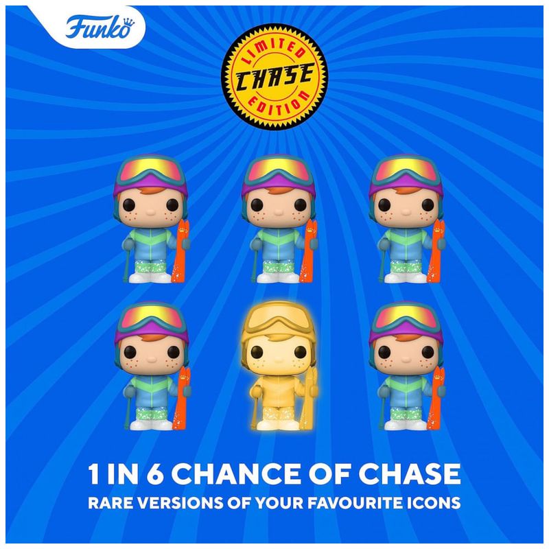 Existe até uma chance de 1 em 6 de você encontrar a variante de perseguição cósmica. Bobblehead de vinil tem aproximadamente 4,15 polegadas de altura.