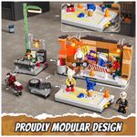 Peças impressas abrangem mural de grande formato, grafismos de piso industrial, capas de álbuns e detalhes em mesa de DJ, reforçando a estética de clube underground. A construção é compatível com outros cenários urbanos modulares, podendo ser integrada a conjuntos de clube de música e ruas da mesma linha para formar uma cidade com foco em dança e música.