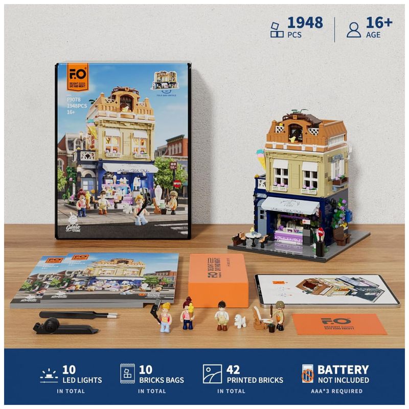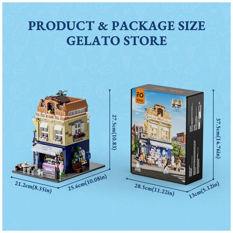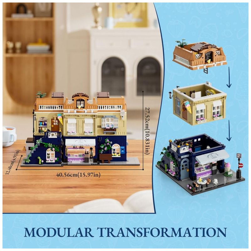 O conjunto é construído sobre base de 32 x 26 studs, compatível com outros prédios modulares de cidade, e pode ser combinado com o café livraria da mesma linha para formar quarteirões temáticos. Detalhes internos incluem balcão, vitrines refrigeradas, máquina de sorvete, caixa, mesas, cadeiras, jardim no terraço e elementos decorativos voltados para o tema de sobremesas e férias.