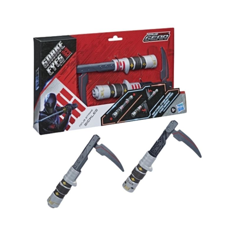 G.I Joe Origins Snake Eyes Ninja Strike Sickles - Hasbro Informações do Produto: Um mundo de tecnologia avançada, onde armas tradicionais ninjútsu e ninjas futuristas encontram nos equipamentos snake eyes origins ninja strick. Com design e detalhes incríveis como no filme, além da ação de ataque súbito ninja strike, meninos e meninas vão se divertir recriando momentos favoritos e imaginando as suas próprias aventuras também. As crianças podem separar as partes do tridente para ativar a ação de ataque súbito e revelar as lâminas. Recomendado para crianças maiores de 5 anos de idade. Itens inclusos: 2 bastões ninjas. Dimensões aproximadas do produto: AxLxC 21cm x 3 cm x 11cm. Recomendado: Não recomendado para menores de 3 anos. Alimentação: Não necessita. Material composição: Plástico. Certificação: CE-BRI/IFQB – 03353-08 NM 300/2002. Ocp 0003 Garantia do Fabricante: 03 meses contra defeitos de fabricação. Aviso: Todas as informações divulgadas são de responsabilidade exclusiva do fabricante/fornecedor. As cores dos tecidos ou dos produtos podem variar entre as imagens mostradas acima ou fotos da embalagem. Imagens meramente ilustrativas.