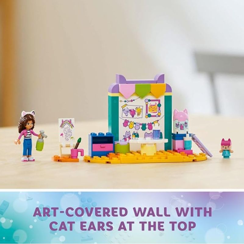 Um conjunto criativo para crianças – Inclui uma miniboneca da Gabby, uma figura de Bebê Caixa e uma série de materiais de artesanato, incluindo tinta, um pincel, tesouras e uma lata de spray