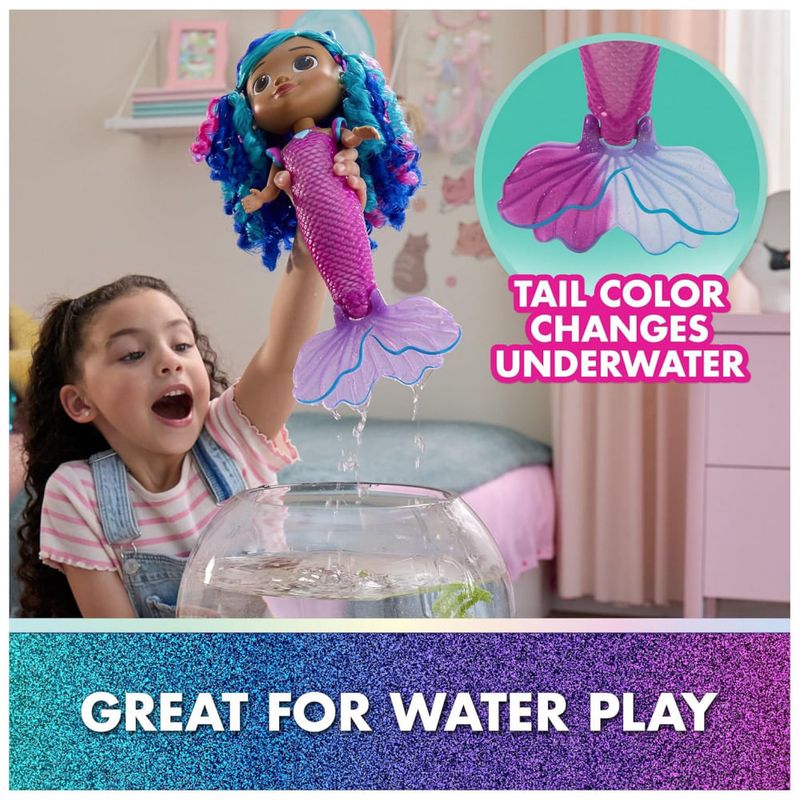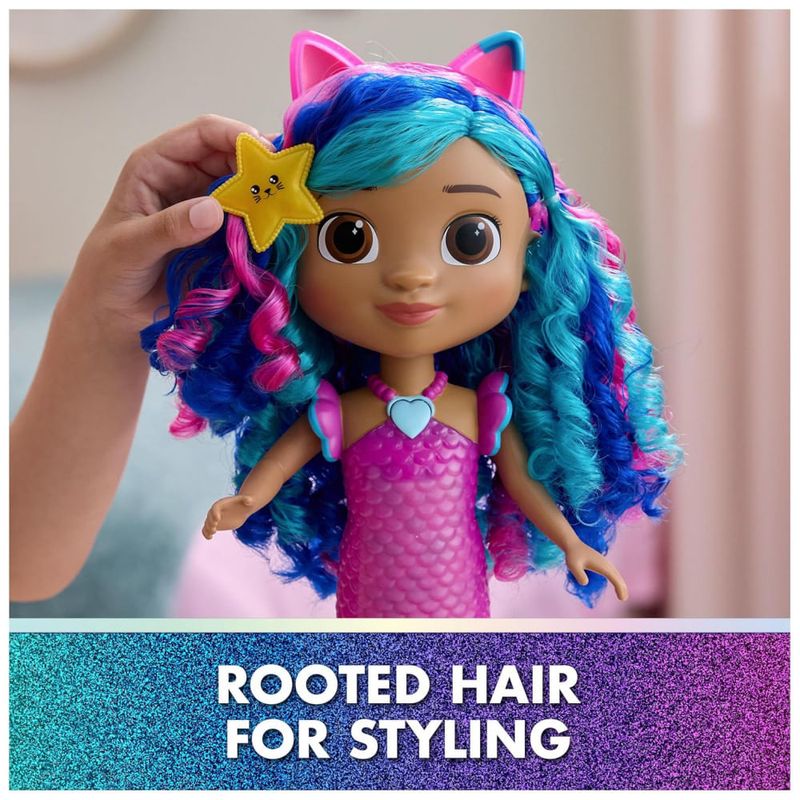 Explore o mundo mágico de Gabbys Dollhouse The Movie com a Boneca Sereia Canta Brilha Gabby! Esta encantadora boneca sereia Gabby é um tesouro de luzes e sons, pronta para infinitas aventuras. Com um simples toque em seu colar de coração, a Sereia Gabby se ilumina e reproduz 14 diferentes efeitos sonoros, frases e músicas do filme Gabbys Dollhouse. Este incrível brinquedo sereia à prova d'água até muda a cor do rabo em água morna, para um toque de magia na hora de brincar. Com mais de 35 centímetros de altura, cabelos ondulados e acessórios encantadores, como um simpático estrela-do-mar que ela pode segurar ou usar nos cabelos, para aventuras fantásticas. Este brinquedo é uma maneira divertida de inspirar brincadeiras de faz de conta com brinquedos educativos e convida a explorações surpreendentes, com esses adoráveis brinquedos de gato Gabby para crianças. Os brinquedos da casa de bonecas de Gabby são presentes perfeitos para crianças reviverem momentos queridos do filme Gabby, e para criar novas aventuras na casa de bonecas de Gabby, com brinquedos para crianças pequenas, como acessórios de casa de bonecas, móveis, seus incríveis amigos gatos e brinquedos sereia fantásticos, para horas intermináveis de aventuras fantásticas cada um vendido separadamente. Traga-a à vida pressionando seu colar de coração para ver seu corpo iluminar e ouvir 14 efeitos sonoros, frases e músicas de Gabbys Dollhouse The Movie. Brinquedo Sereia Mágica: Com mais de 35 centímetros de altura, esta boneca sereia Gabby é à prova d'água, apresenta um rabo que muda de cor em água morna e pode ser dobrado para que ela possa ficar de pé fora da água. Inspirando Brincadeiras Imaginativas: Esta boneca sereia Gabby convida as crianças a explorarem sua criatividade, com seus recursos interativos, é uma escolha fantástica para aniversários, feriados e muito mais. Construa um Mundo de Casa de Bonecas: Com tudo, desde quartos temáticos e móveis de casa de bonecas até figuras e conjuntos de bonecos, crie um mundo de casa de bonecas que ajude as crianças a desenvolverem sua imaginação através do faz de conta. Colecione Todos: Os brinquedos da casa de bonecas de Gabby são brinquedos pré-escolares para crianças que adoram brincar com acessórios de bonecas, brinquedos surpresa, animais de pelúcia, brinquedos femininos, quebra-cabeças e jogos de tabuleiro. Inclui 1 Sereia Gabby, 1 Acessório Estrela-do-Mar.