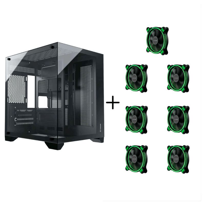 Descubra o Gabinete Gamer Aquario Clarity Preto com 7 Fans LED Verde, a escolha perfeita para gamers e entusiastas que buscam alta performance e estilo incomparável. Com design moderno em vidro temperado, oferece visual elegante e espaço amplo para montar setups potentes. As 7 ventoinhas com LED verde garantem excelente refrigeração, mantendo seus componentes sempre na temperatura ideal mesmo durante longas sessões de jogo.