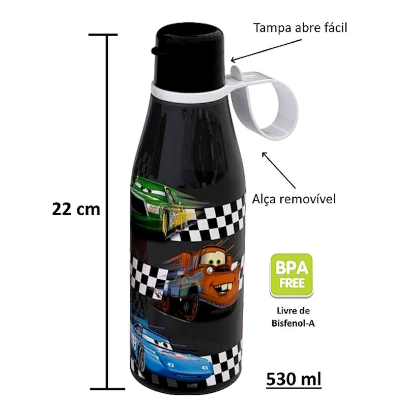 Garrafa 530ml Plasútil Disney Carros com Tampa Abre Fácil