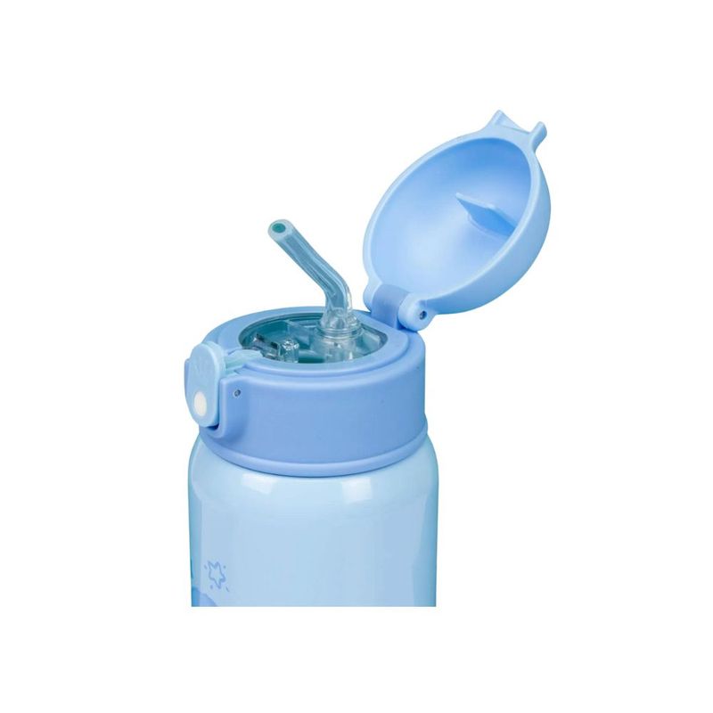 Descrição: A Garrafa térmica com canudo Pimpolho tem capacidade de 400ml e mantém as bebidas quentes ou geladas por até 5 horas. Sua tampa com botão de pressão é prática e higiênica, possui superfície transparente que permite enxergar o conteúdo interno sem necessidade de desenroscar a mesma. A garrafa é confeccionada em aço inoxidável de alta qualidade, não enferruja ou entorta com o uso regular. Cor: Azul