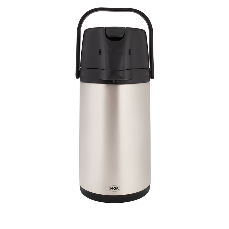 Com corpo e ampola em inox e capacidade de armazenamento de 2,5 litros, a Garrafa Térmica Total Inox Airpot com Alavanca é sinônimo de eficiência e durabilidade! Ela é ideal para armazenar um bom café, aquele chá especial ou até muita água quente para o seu chimarrão. A alça e cabeça fixas ao corpo oferecem maior segurança durante o manuseio. Sua tecnologia Airpot garante melhor vedação e pressão no bombeamento dos líquidos. Já sua prática alavanca para bombeamento e o sistema corta-pingos, facilitam ainda mais o ato de servir as bebidas sem fazer sujeira. A Garrafa Térmica Total Inox Airpot proporciona maior tempo de conservação térmica, armazenando suas bebidas quentes ou frias com mais eficiência e qualidade.Todas as garrafas térmicas e os bules da Mor são livres de BPA atendem às especificações estabelecidas pela NBR 13.282 da ABNT, ou seja, garantia total de qualidade!