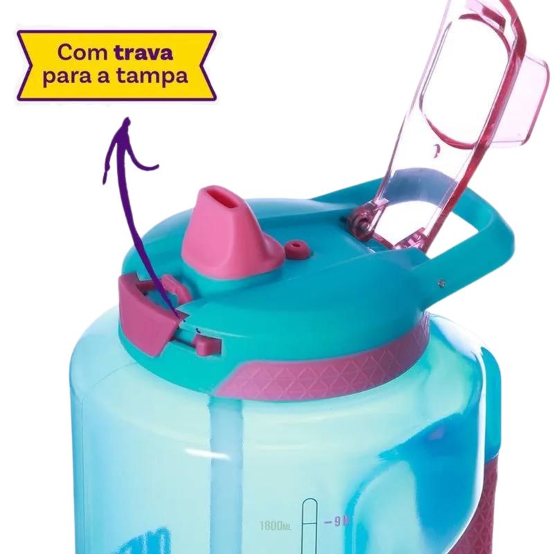 Precisando daquela mãozinha na hora de dar um presente bacana para a sua amiga? A gente te ajuda! Com 1,8L de capacidade, essa garrafa tem tudo o que você precisa para que a sua BFF mantenha uma boa relação com a hidratação! Com cronograma para auxiliá-la a controlar os horários, é a companhia ideal para o seu dia a dia! Não importa o rolê, essa garrafa te hidrata em todos os lugares!
