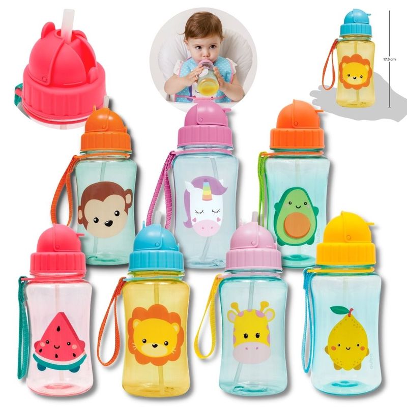 --- Garrafinha Infantil de Água e Bebidas - Crianças e Bebês - Livre de BPA - Com Canudo Retrátil de Silicone - Buba Baby ---