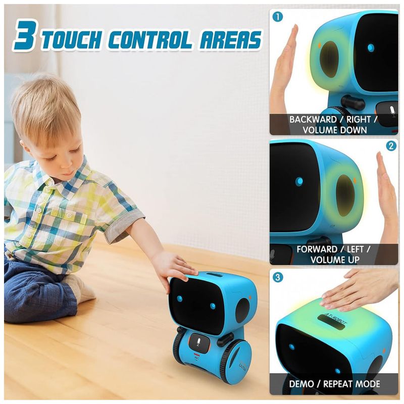 Parceiro Inteligente e Professor O brinquedo robô infantil irá para frente, para trás, virar à esquerda, virar à direita e girar 360 graus quando você tocar no botão do sensor. Além disso, falar, cantar e dançar são habilidades em que é bom, não apenas como amigo, mas também como um ótimo professor para seus filhos.