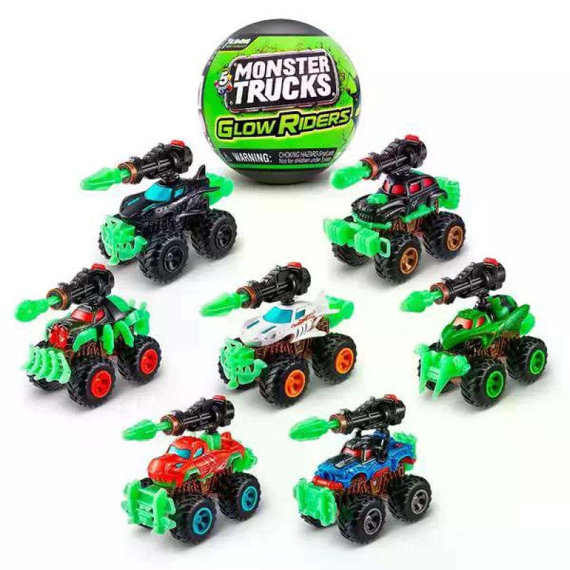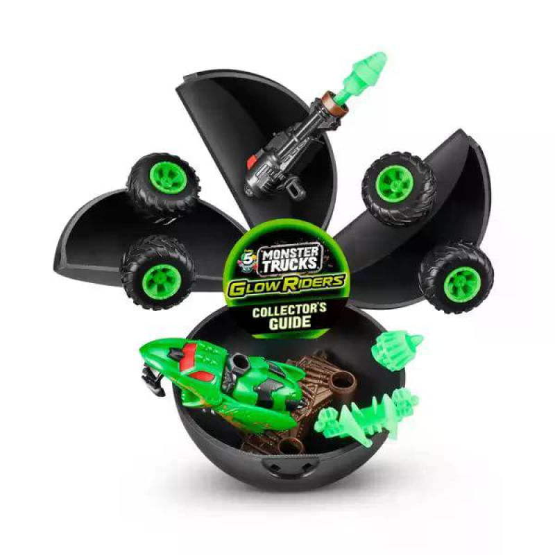 Dentro de cada globinho vem 01 Monster Truck completo totalmente estilizado, 01 lançador de míssil e 01 guia de colecionador.