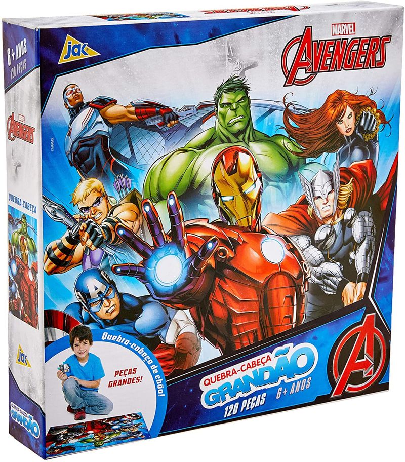 As crianças vão se divertir com o incrível quebra-cabeça dos personagens Os vingadores 120 peças grandão da linha JAK. Os quebra-cabeças são importante no desenvolvimento das crianças por estimular a habilidade motora, a concentração e a percepção visual!