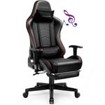 Cadeira para jogos de música projetada com dois alto falantes Bluetooth. o sistema de som surround traz o melhor do seu entretenimento, oferecendo um som estéreo notável e ricamente detalhado com graves sólidos e áudio claro e completo. conecte o ao seu smartphone, tablet ou outros dispositivos habilitados para bluetooth e desfrute de música, jogo para celular ou filme com som emocionante como o de cinema no conforto da sua cadeira de jogos.