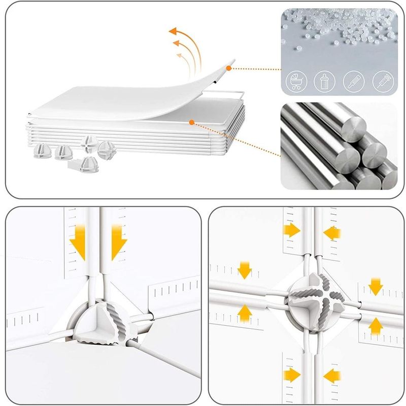 Características: Design Funcional e Elegante: Composto por 6 módulos desmontáveis, este armário traz uma estética sofisticada e prática ao ambiente infantil. Seu design versátil adapta-se facilmente ao estilo do espaço, proporcionando uma aparência moderna e organizada. Material Durável e Fácil de Limpar: Fabricado com plástico resistente e fio de aço cromado, o armário é robusto e simples de manter. A superfície lisa facilita a limpeza, garantindo que o armário permaneça sempre com aparência nova. Configuração Flexível: O design modular permite montar e rearranjar os módulos rapidamente, oferecendo flexibilidade para adaptar o espaço de acordo com suas necessidades e preferências. Ideal para mudanças de layout à medida que a criança cresce. Dimensões Adequadas: Com medidas de 105 x 70 x 35 cm quando montado, o armário oferece espaço suficiente para organizar roupas, sapatos, brinquedos e livros, mantendo tudo acessível e em ordem.