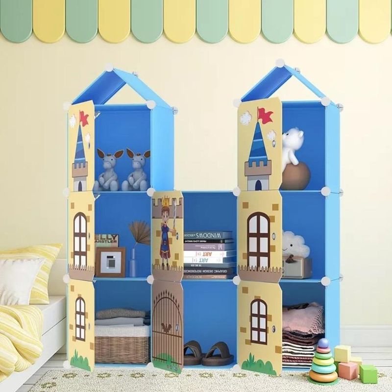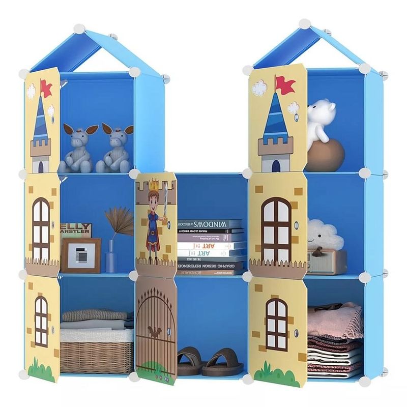 Características: Design Encantador: Com um tema de castelo e elementos decorativos, este armário é perfeito para transformar o quarto, berçário ou sala de brinquedos em um espaço mágico e atraente para seu filho. Modular e Flexível: O design modular permite configurar o armário conforme o espaço disponível e as necessidades de organização. É fácil adaptá-lo para otimizar o uso do espaço e atender às suas preferências. Fácil Montagem: A montagem é rápida e descomplicada, com instruções claras incluídas. Você pode configurar o armário sem esforço e começar a usá-lo em pouco tempo. 10 Compartimentos: Com 8 compartimentos fechados e 2 abertos, o armário oferece amplo espaço para organizar roupas, brinquedos e outros itens essenciais. Cada compartimento fechado tem dimensões de 35x35 cm, proporcionando um armazenamento eficiente e organizado. Material Durável: Fabricado em plástico e fio de aço cromado, o armário é resistente e fácil de limpar, garantindo uma solução durável e prática para o armazenamento infantil. Medidas: 127 x 110,5 x 37 cm