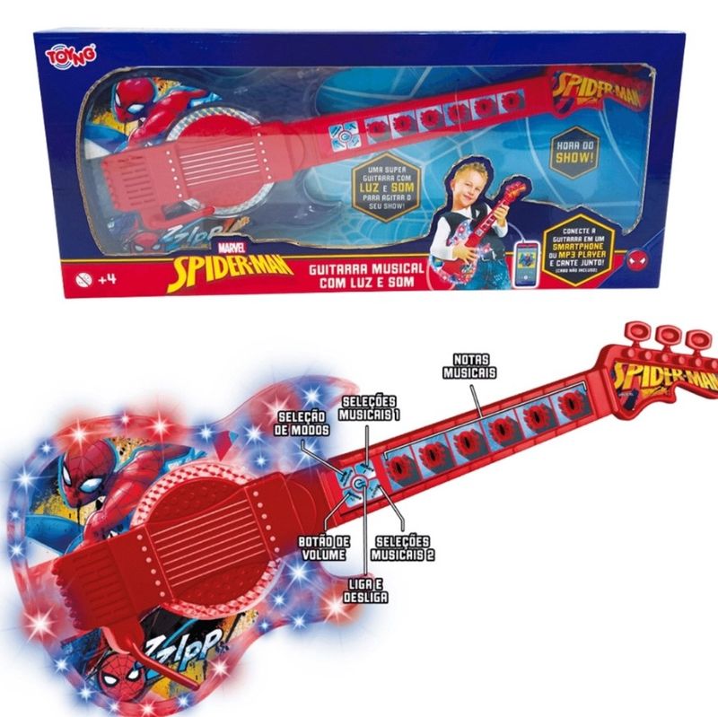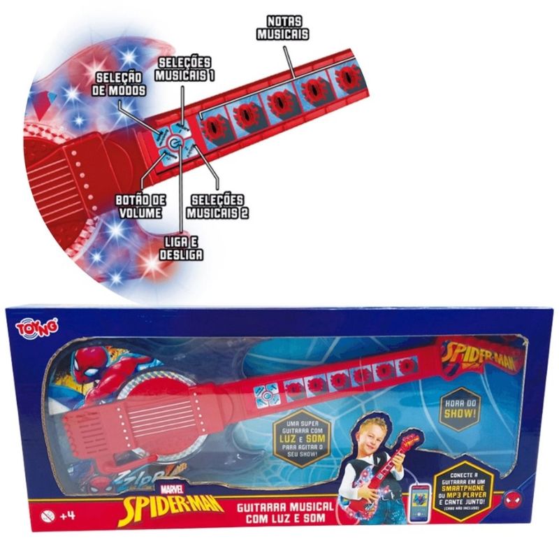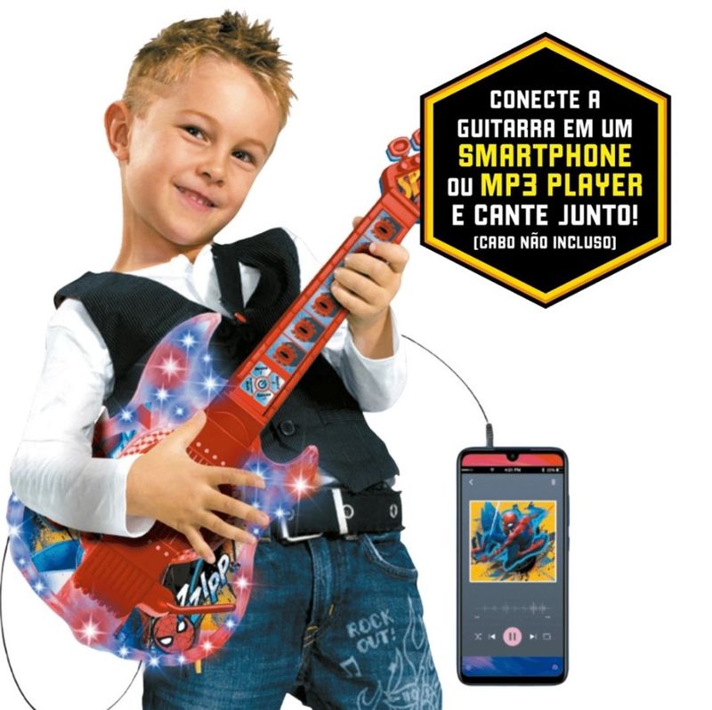 Descubra o multiverso da música com a Guitarra Musical do Homem Aranha, onde cada acorde ilumina a imaginação e traz os contos mais queridos para a realidade! Projetada para encantar, esta guitarra não é apenas um instrumento, é um convite para viver aventuras inesquecíveis ao lado do herói mais querido da criançada!