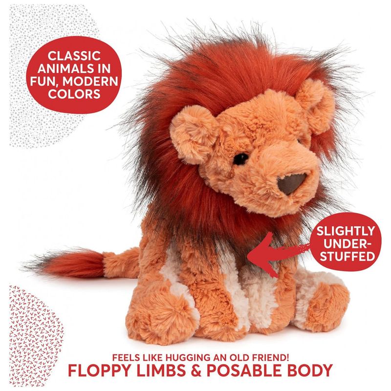 COZYS COLLECTION PLUSH LION A coleção Cozys apresenta companheiros fofinhos com pelúcia texturizada especial que parece abraçar um velho amigo Este adorável leão é perfeito para abraços e aventuras com os mais pequenos.