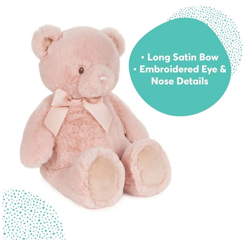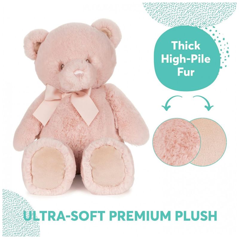 PRESENTE DE CHUVEIRO PARA MENINAS Este doce ursinho de pelúcia rosa empoeirado apresenta pelúcia ultra suave que parece abraçar uma nuvem e um grande laço de cetim combinando em volta do pescoço. My First Teddy é o presente de banho perfeito para bebês e novas mamães