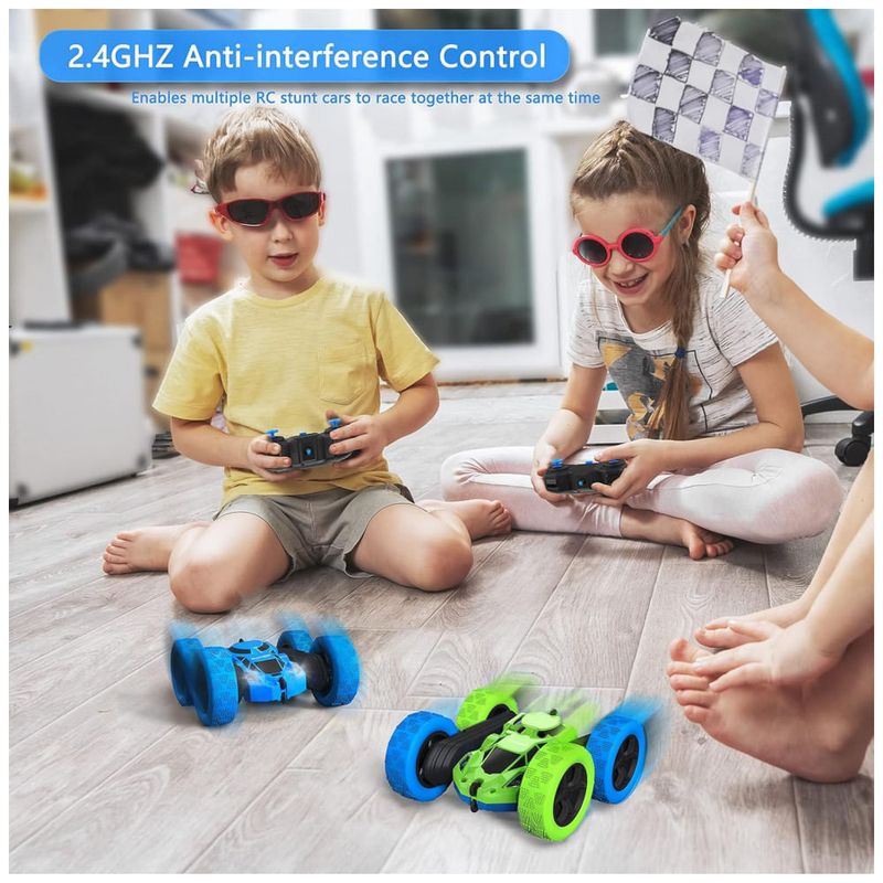 Vários carros jogando ao mesmo tempo Com a tecnologia de frequência anti interferência de 2,4 GHz, vários carros de acrobacias RC podem correr ao mesmo tempo. O controle remoto pode atingir uma distância máxima de 50M