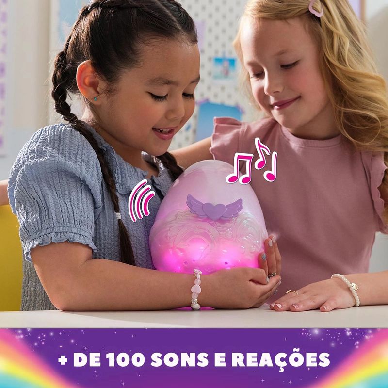 Cada Hatchimal nasce de forma única e reage ao toque, ao som e ao cuidado da criança, tornando cada experiência mágica e cheia de emoção.