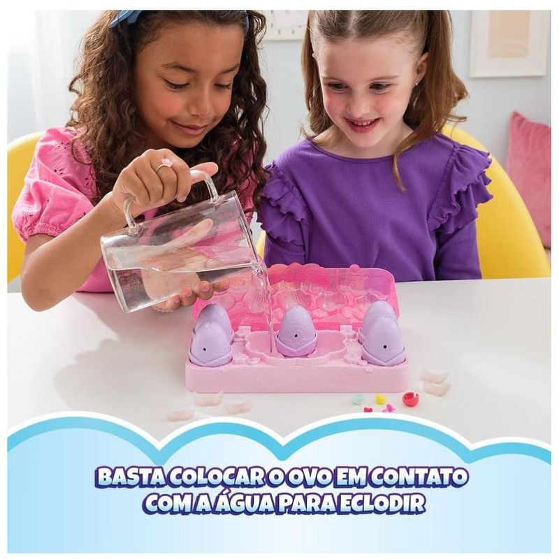 A nova linha de Hatchimals chegou, trazendo uma explosão de fofura e cores vibrantes, com muitas surpresas para você descobrir! Coloque o ovo no ninho e veja qual Hatchimal vai nascer para você. Com 5 variações de cores, cada experiência é única e cheia de diversão! Descubra a magia de cada Hatchimal enquanto eles ganham vida diante dos seus olhos. Os acessórios e asas incluídos permitem que você personalize e crie histórias incríveis com seus novos amigos. Itens inclusos: 5 ovos, 5 personagens, 5 acessórios, 1 caixa e 5 asas.
