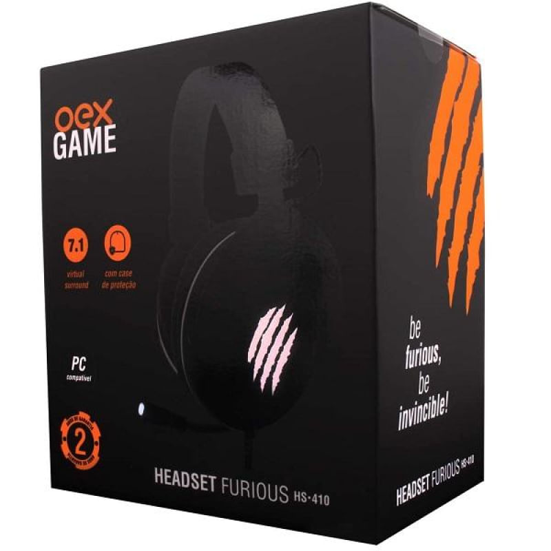 HEADSET FURIOUS: Conexão USB / Virtual Surround de 7.1 canais / LED nas laterais do fone e microfone / Controle acoplado ao cabo com funções para áudio, volume, microfone e iluminação / Haste com ajuste deslizante de aço inoxidável e revestimento interno acolchoado / Fones extra acolchoados para maior conforto e isolamento acústico / Microfone retrátil e flexível, com ajuste de posição / Acompanha case exclusivo com acabamento premium para armazenar e proteger o headset / Comprimento do cabo: 2,2m / Peso: 366g / Diâmetro do fone: 50mm / Sensibilidade: 99dB ± 3dB / Impedância: 32Ohm / Resposta de frequência: 20Hz ? 20kHz / Potência: 20mW / Com software disponível para downloadO headset Furious foi desenvolvido para os gamers que prezam pela qualidade de áudio e definição! Uma experiência que oferece o sistema de som Virtual Surround 7.1 e acompanha case premiun para armazenar e proteger seu headset! Com a aparência robusta, o headset conta com iluminação em LED, fones extra acolchoados com excelente isolamento acústico, haste com ajuste deslizante de aço inoxidável e microfone retrátil e flexível.