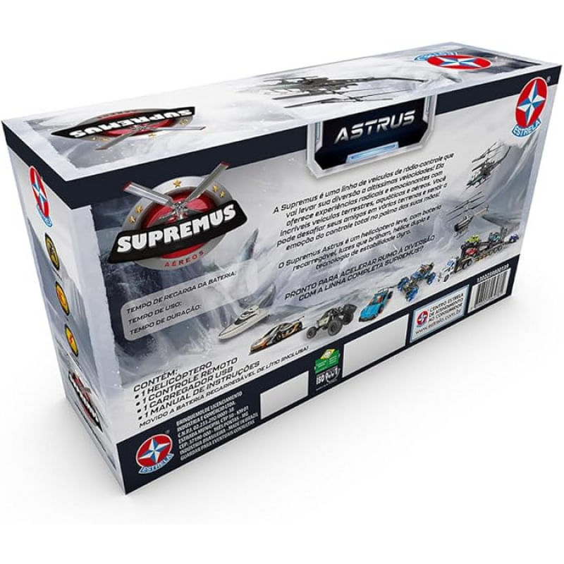 O Supremus Astrus da Estrela é um helicóptero de controle remoto cheio de tecnologia e diversão. Com design moderno, luzes incorporadas e uma estrutura resistente, ele oferece uma experiência de voo realista e empolgante. Equipado com sistema de estabilidade Gyro, o Astrus garante manobras precisas e suaves, permitindo que pilotos de todas as idades dominem o céu com facilidade.