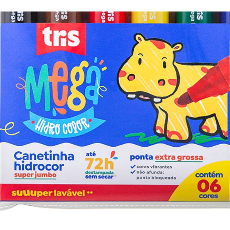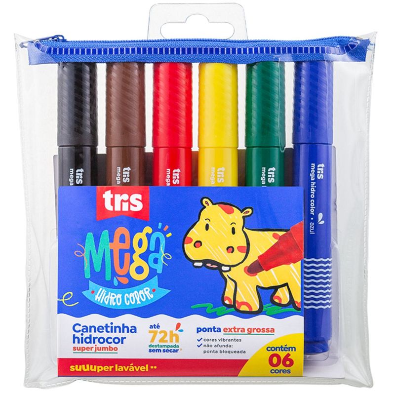 HIDROCOR MEGA HIDRO COLOR - SUPER JUMBO - 6 CORES - TRIS
