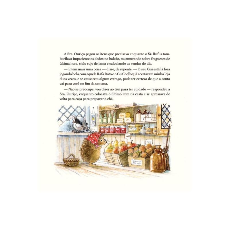 Escondida no coração do campo, a vila de Foxwood é um lugar mágico, onde pequenos aventureiros vivem grandes histórias. Mas quando a loja do Sr. Rufus é assaltada, Gui Ouriço, Rafa Rato e Gu Coelho unem forças para desvendar o mistério. Será que conseguirão desmascarar os ladrões? Explore os caminhos do campo, observe as árvores frondosas, ouça os sons da floresta e encontre os animaizinhos que vivem por lá. Talvez você receba um convite para se sentar ao redor de uma fogueira aconchegante e se encantar com as maravilhosas Histórias de Foxwood. Roubo em Foxwood é a primeira de oito aventuras encantadoras dos inseparáveis amigos Gui Ouriço, Rafa Rato e Gu Coelho. Nesta história, as crianças serão apresentadas lições sobre obediência, respeito, responsabilidade, amizade e cuidado uns com os outros. SUGESTÃO DE IDADE PARA LEITURA: - Leitura compartilhada: crianças de 3 a 5 anos. - Leitura independente: a partir de 6 anos