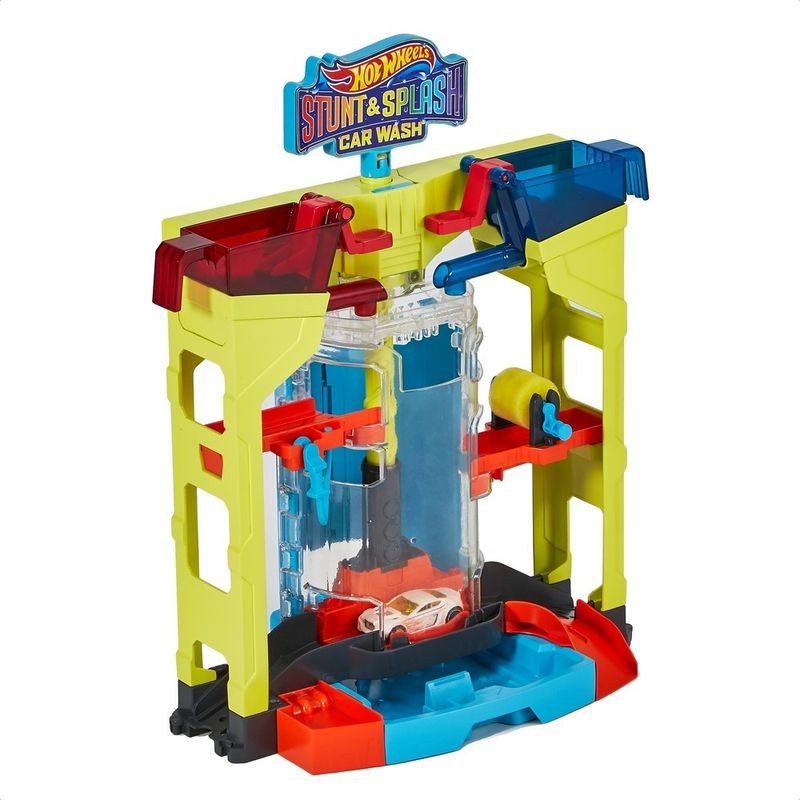 O conjunto Hot Wheels® Stunt Splash Car Wash™ combina elementos práticos de um lavador de carros de verdade com o mundo repleto de ação de Hot Wheels®. Um elevador de manivela transporta os carros por uma construção complexa que leva a um cano de água onde as crianças podem lavar os carros. As crianças controlam se é água quente ou fria, o que muda a cor de qualquer Hot Wheels® Color Shifter™. O Hot Wheels® Stunt Splash Car Wash™ se conecta a outros conjuntos Hot Wheels™ City (vendidos separadamente) para aventuras por toda a cidade. Crianças a partir de 4 anos terão horas de diversão com este conjunto. As cores e as decorações podem variar.