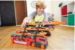 O mega reboque hot wheels é uma plataforma enorme para grandes aventuras e possibilidades ilimitadas de criação de histórias este gigantesco reboque pode carregar até 50 carros em seis níveis expansíveis - e isso é só o começo! tem uma rampa que desce para se conectar aos conjuntos de hot wheels.