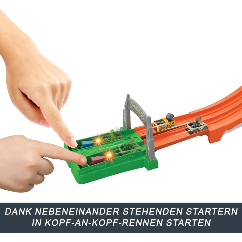 Corra Para Escapar da Ilha Jurassic World Neste Conjunto de Pistas Hot Wheels Racerverse Que Apresenta Uma Corrida de Arrancada e Uma Tirolesa No Final. Inclui Os Pilotos Fundidos Blue The Raptor e Owen com Figuras Não Removíveis Nos Assentos do Motorista de Veículos Hot Wheels Fundidos Que Estão Prontos Para Corridas de Pista. o Piloto Mais Rápido Chegará à Torre de Vigia e Fará Tirolesa em Segurança, Enquanto Seu Oponente Cairá Na Boca Aberta do Mosasaurus Que o Espera. o Conjunto Dobra-Se Ao Meio Para Facilitar o Armazenamento.