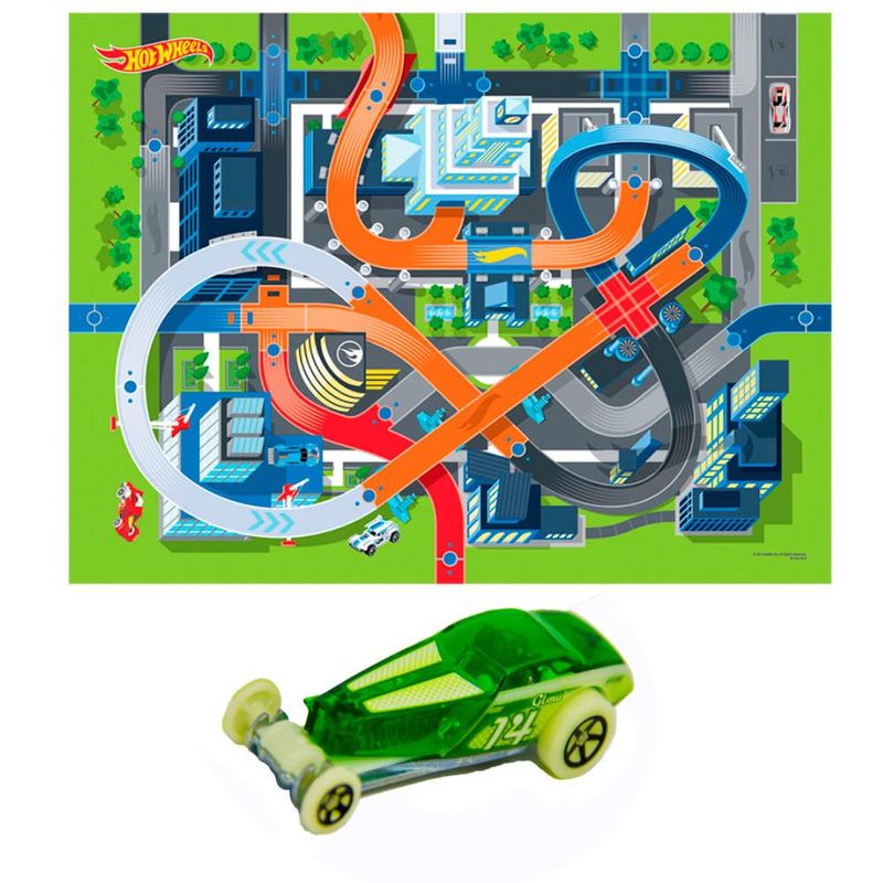 • Tapete com pista e carrinho Hot Wheels - O tapete é estampado com a pista personalizada da série para a criança brincar com o carrinho pelas áreas desenhadas. • Escolha o seu preferido ou colecione! • Tamanho do tapete: 90 x 120 cm • Contém: tapete com pista Hot Wheels + 1 carrinho modelo sortido • Material: PET, METAL, PAPEL E EVA | tapete em espuma EVA • INMETRO: 010473/2022 • Indicação: +3 anos