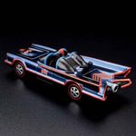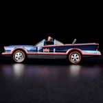O acabamento azul de aço Spectraflame nesta edição é acentuado por um logotipo BATMAN vermelho no capô e nas laterais com linhas vermelhas na frente, nas laterais e na traseira com um chassi pintado de preto fosco. Com rodas Neo-Classics Redline e construção totalmente metálica, esta peça 1:64 inclui janelas esfumadas claras e um interior preto com assentos pintados de azul e uma cúpula de sirene pintada de vermelho.