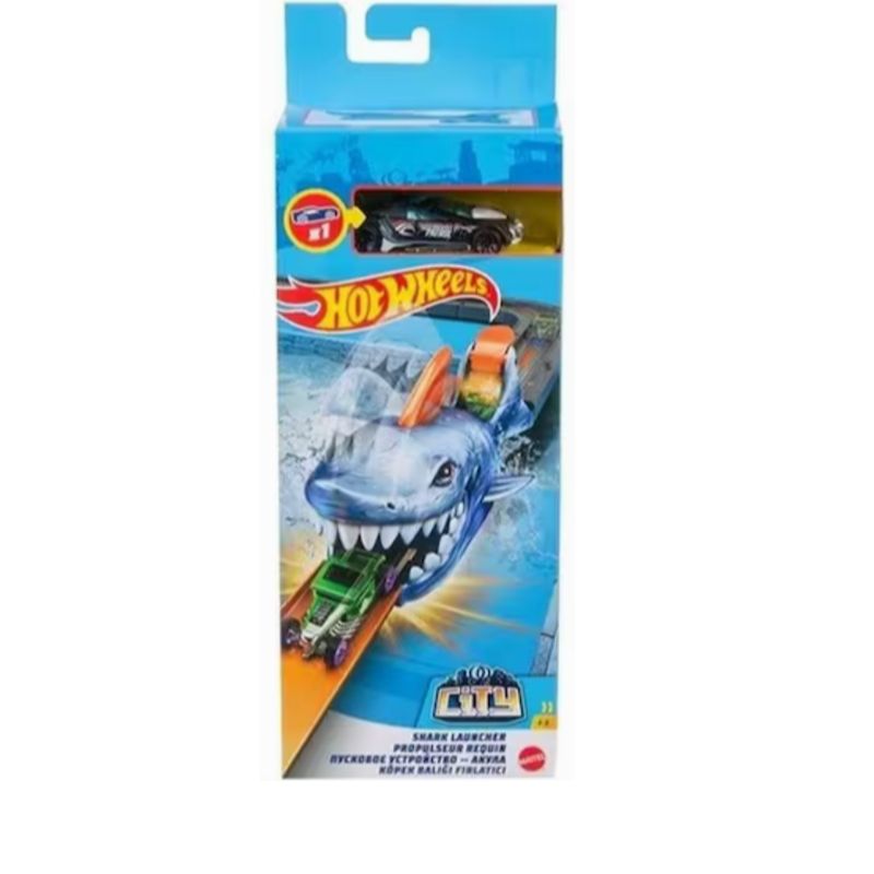 Hot Wheels City Lançador Shark Launcher Mattel GVF43|GVF41Descrição:Hot Wheels City Lançador Shark Launcher da Mattel (modelos GVF43|GVF41) é um conjunto emocionante para crianças que adoram desafios e velocidade. Com um lançador em formato de tubarão, esse playset permite que os carrinhos Hot Wheels sejam impulsionados a toda velocidade para fugir das mandíbulas do predador!Compatível com outras pistas Hot Wheels City, o Shark Launcher proporciona um novo nível de adrenalina às corridas e brincadeiras. Basta posicionar o carrinho, acionar o lançador e ver se ele consegue escapar do tubarão feroz.Destaques do Hot Wheels City Lançador Shark Launcher: