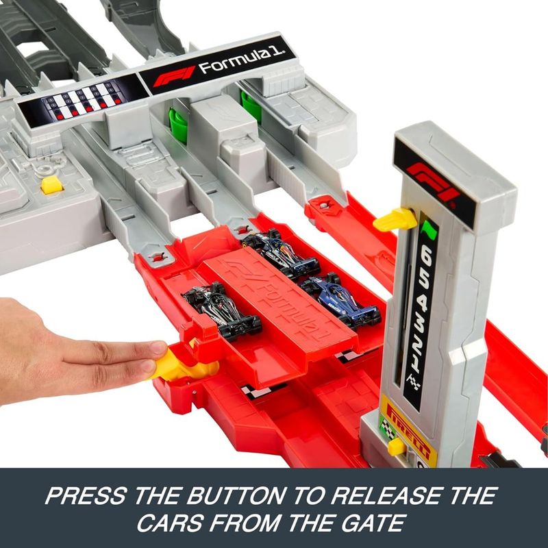 Você pode recriar a emoção das corridas do Grande Prêmio de Fórmula 1® com este conjunto de pista da Hot Wheels. No modo de corrida, o contador de voltas acompanha os carros enquanto eles passam pelo acelerador de três pistas e aceleram em curvas dinâmicas e mudanças de elevação, exatamente como nas ruas da cidade real. As crianças podem acionar o desvio interativo DRS que permite que os veículos ultrapassem o líder em uma curva - o vencedor será o primeiro a chegar ao portão de chegada. No modo infinito, corra continuamente com os três carros F1® die-cast incluídos, ajustando manualmente os desviadores para aumentar a competição. As pistas apresentam pontos de conexão Pista de Corridas Speed Snap para estender a corrida com mais pistas e conjuntos. (Pistas e conjuntos Hot Wheels adicionais são vendidos separadamente.) As cores e as decorações podem variar.