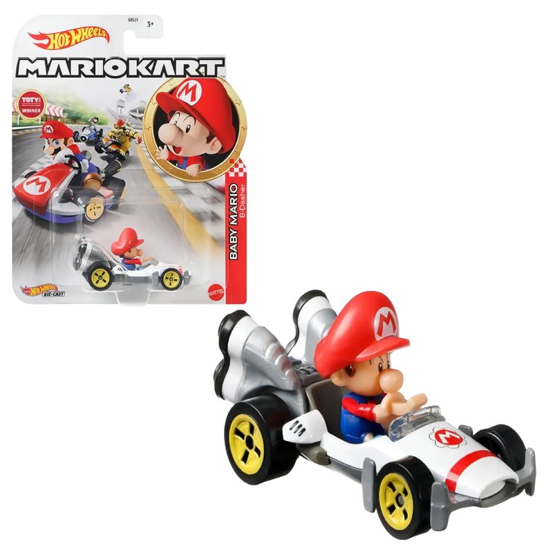 Os carrinhos Mario Kart da Mattel Hot Wheels trazem para o mundo real a emoção das corridas do famoso jogo da Nintendo. Produzidos em metal fundido com detalhes plásticos, eles reproduzem com fidelidade os personagens e veículos clássicos, como Mario, Luigi, Yoshi, Bowser e muitos outros. Cada miniatura é feita na escala 1:64, compatível com as pistas Hot Wheels, permitindo realizar corridas, manobras e acrobacias divertidas. O acabamento é colorido, cheio de detalhes característicos de cada personagem, tornando os carrinhos ideais tanto para brincar quanto para colecionar. Recomendados para crianças a partir de 3 anos, os carrinhos Hot Wheels Mario Kart combinam qualidade, diversão e nostalgia em um único produto que agrada fãs de todas as idades.