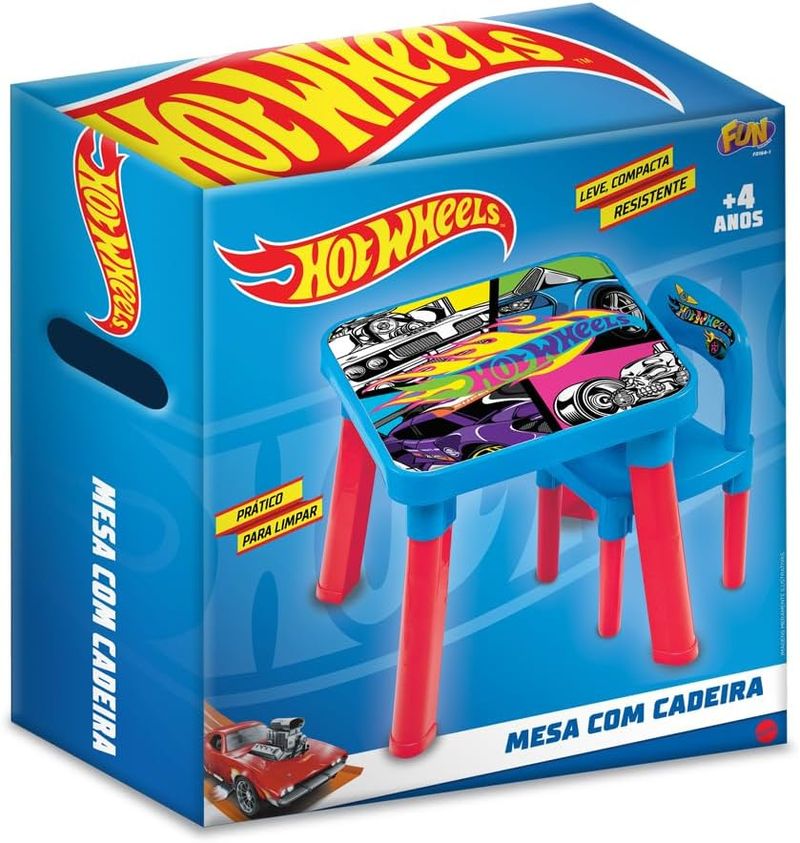 Prepare-se para uma explosão de criatividade e emoção com a Hot Wheels Mesa de Atividades com Cadeira da Fun Divirta-se!