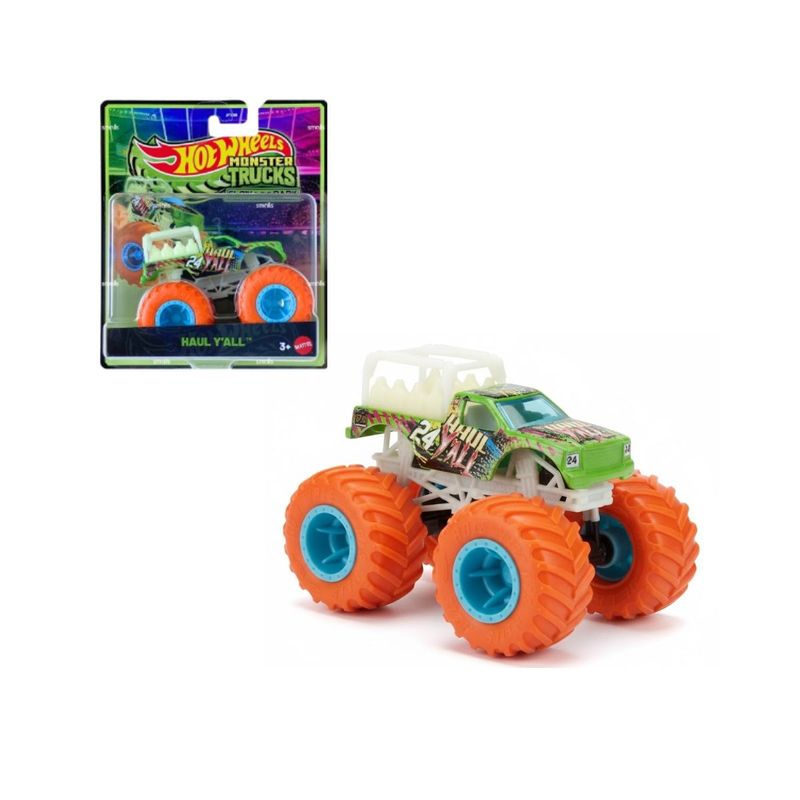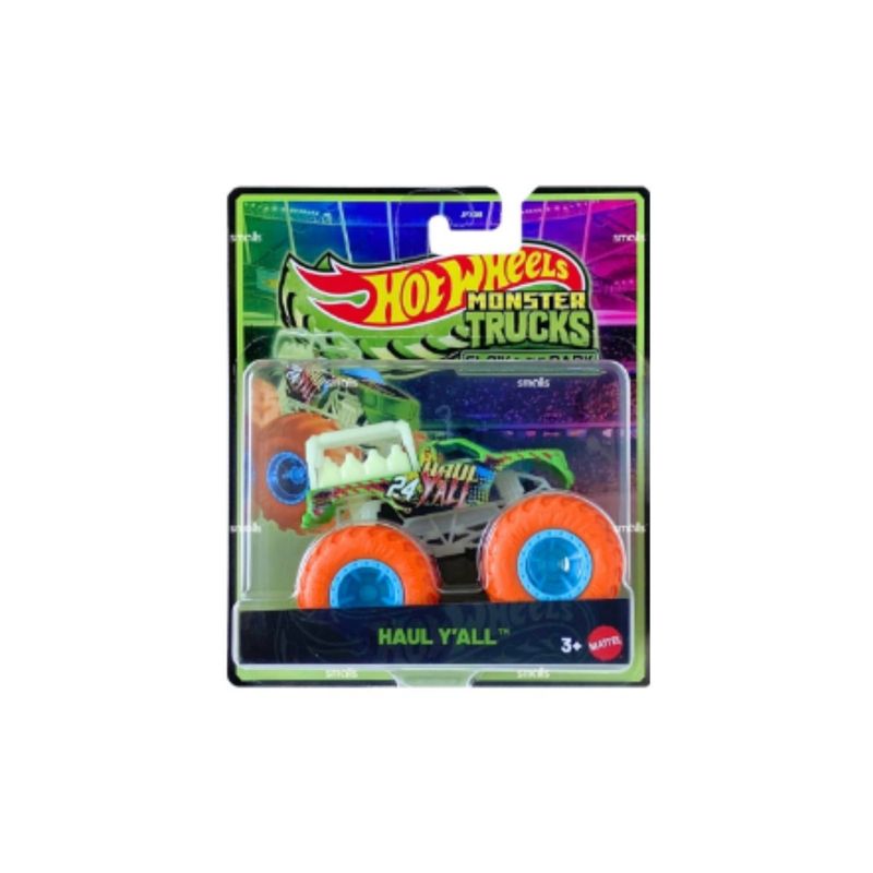 Conteúdo: Carrinho Hot Wheels Monster Trucks Glow in The Dark Haul Y'All, em escala 1:64.