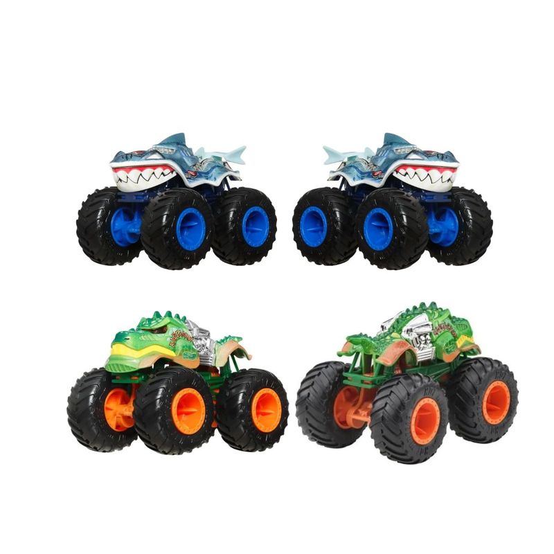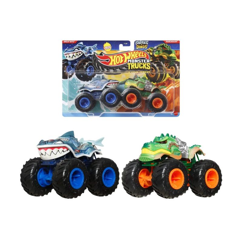 Conteúdo: Pack com 2 Carrinhos Hot Wheels Monster Trucks Great Bite e Rageasaur