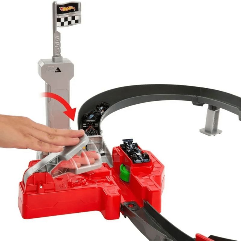 Emule a emoção de uma corrida de Fórmula 1 com o Conjunto de Pistas Hot Wheels Racing Formula 1 Sprint Race Circuit.