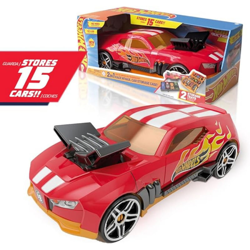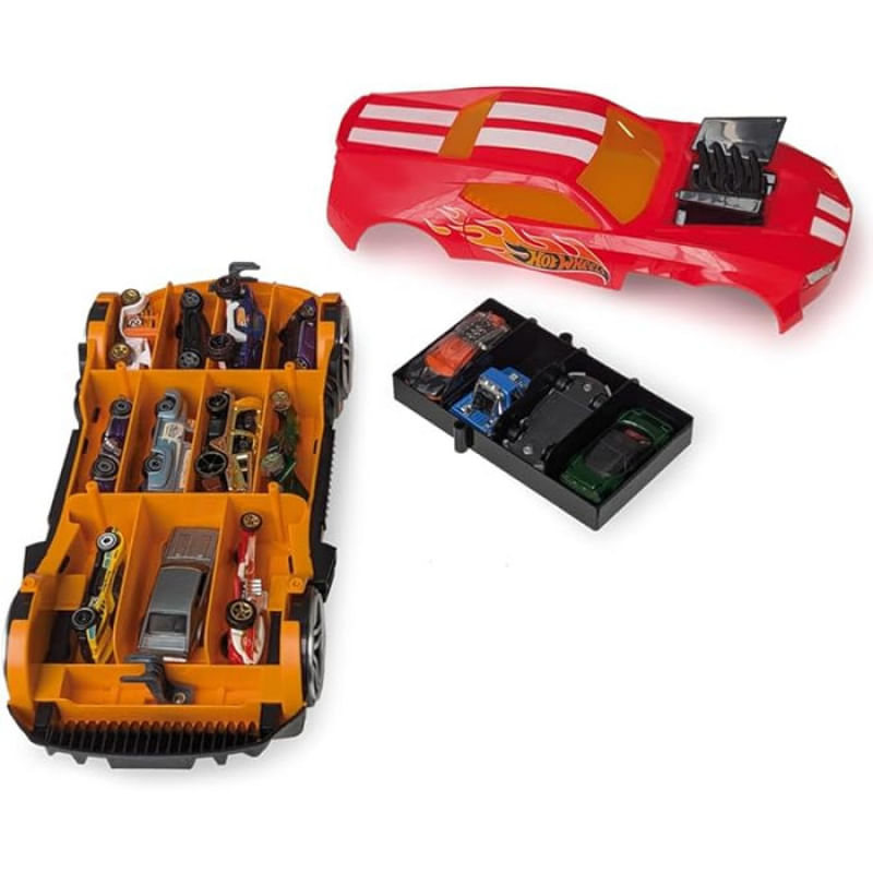O Hot Wheels Porta Carrinhos Radical 2 em 1 é o estojo perfeito para quem ama colecionar, organizar e brincar com seus carrinhos! Em formato de carro esportivo super estiloso, ele armazena até 15 miniaturas Hot Wheels, unindo praticidade, diversão e um visual de tirar o fôlego.