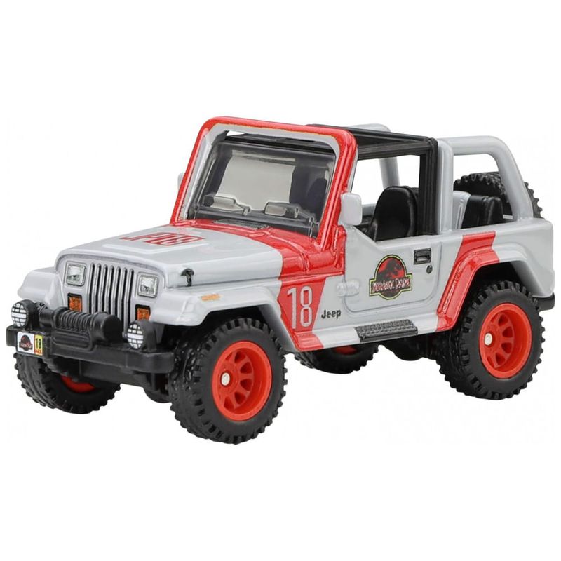 Hot Wheels Premium Pop Culture New Jurassic World é um veículo em escala 1:64 com carroceria e chassi em metal, inspirado no icônico Jeep Wrangler Sahara de Jurassic Park. O modelo faz parte da linha Premium Pop Culture, voltada a colecionadores, com pneus Real Riders em borracha e acabamento detalhado fiel ao veículo original dos filmes.?