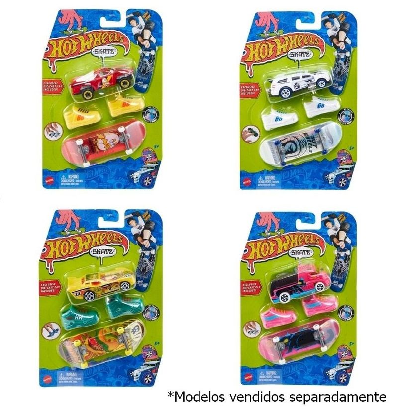 Hot Wheels Skate de Dedos c/ Tênis e Veículo Die-Cast