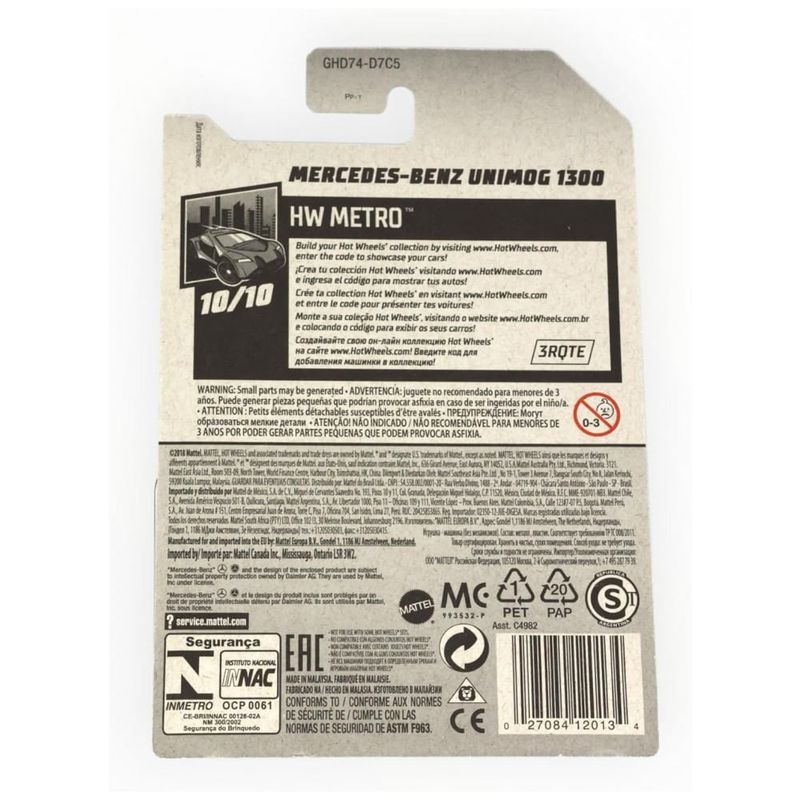 Apresentamos o Hot Wheels Treasure Hunt Hw Metro MercedesBenz Unimog 1300 na cor preta! Este Item é novo e foi minuciosamente selecionado para garantir a melhor qualidade. Prepare-se para embarcar em emocionantes aventuras com este modelo de escala 1:64. Com design detalhado e acabamento impecável, este carro é ideal para colecionadores e entusiastas de todas as idades.