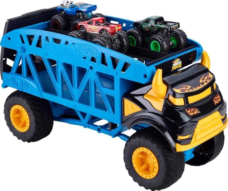 -As crianças podem transportar seus Hot Wheels Monster Trucks com muito estilo no Monster Mover, inspirado no lendário Steer Clear e com três caminhões inclusos! -Este supercaminhão também funciona como organizador e guarda até 12 caminhões de escala 1:64. -Com um único movimento, os pequenos podem lançar até seis caminhões de uma vez pela rampa traseira! -Inclui: 3 dos Monster Trucks favoritos da criançada: Skeleton Crew, Hot Wheels Racing e Rodger Dodge Características: Marca - Mattel Cód. GGB64 Recomendado A partir de 3 anos Contém: 1 Pista Completa + 1 Carrinho